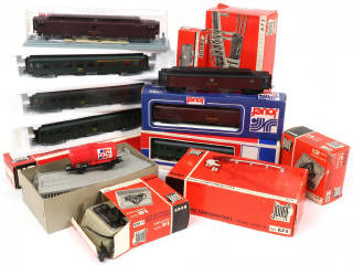 JOUEF 'HO' (FRANCE) Ensemble de 8 matériels & 4 boîtes d'accessoires ferroviaires