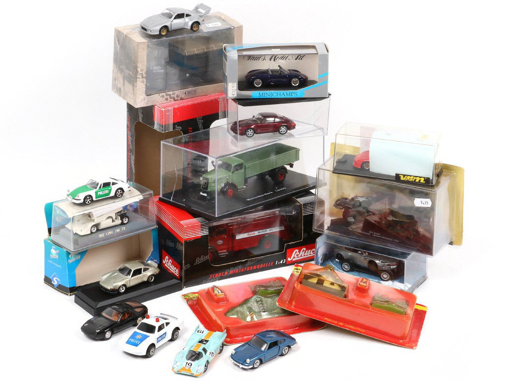 on y retrouve notamment les marques : SCHUCO, VEREM & MINICHAMPS - quelques manques & parties cassées sur certains exemplaires - les boîtes présentées sont en état 'a' à 'c'