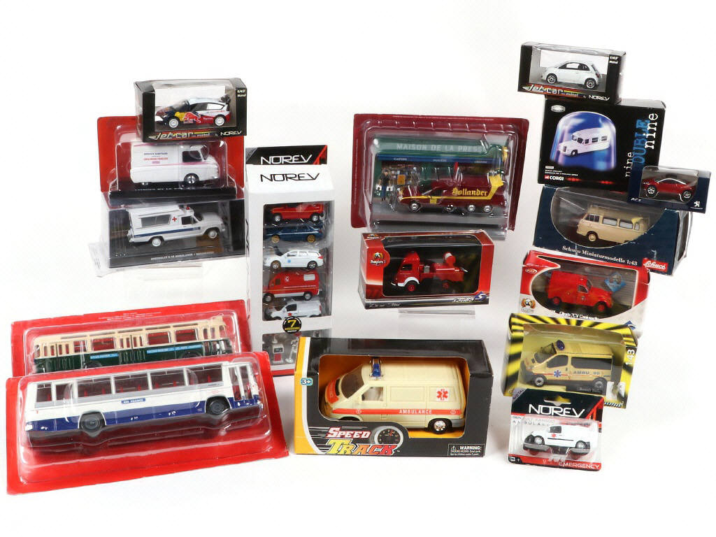 différentes échelles - comprend notamment les marques : NOREV, CARARAMA, SCHUCO & CORGI - boîtes en état 'a' à 'c'
