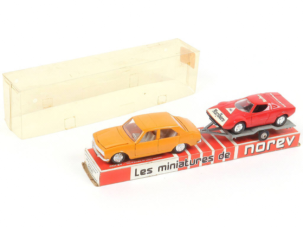 NOREV (FRANCE) 110 PEUGEOT 504 avec remorque porte-voiture moutarde