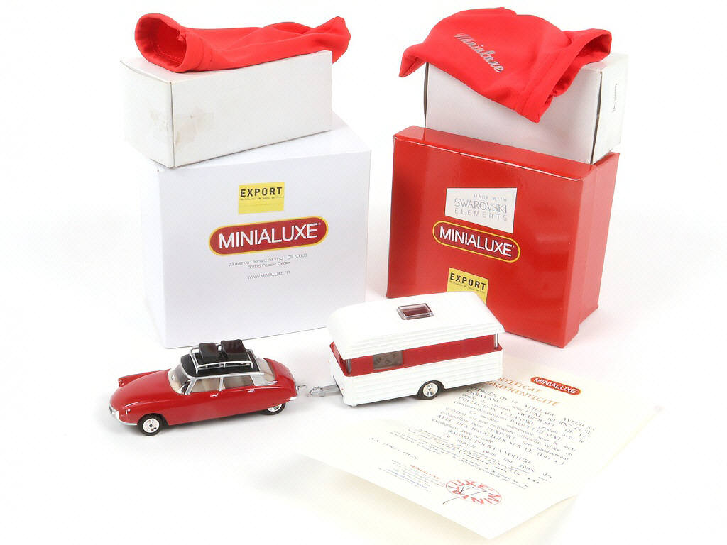 MINIALUXE (FRANCE) RN7-01SE CITROEN DS avec caravane DIGUE rouge, blanc & noir