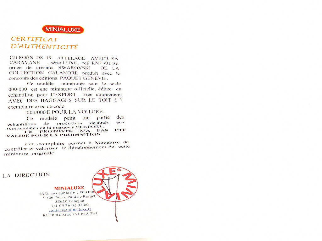 prototype du modèle EXPORT (PIECE UNIQUE !) - CITROEN DS avec bagages & phares en cristaux Swarovski® produit avec le concours des éditions PAQUET GENEVE