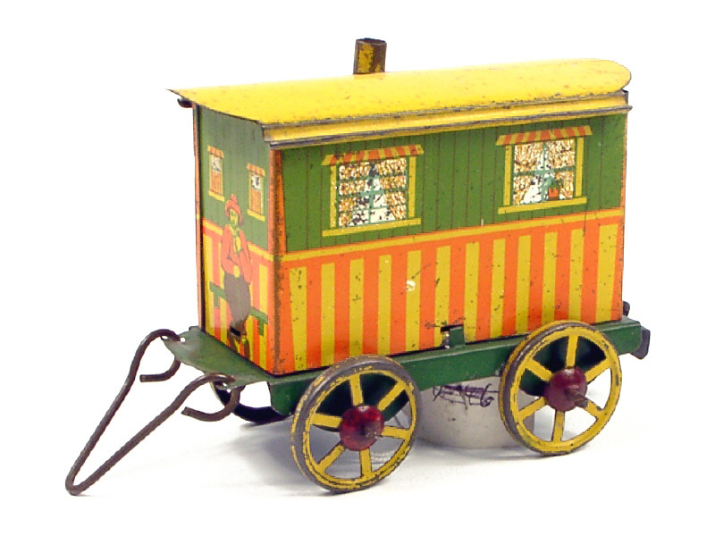 DIVERS (GB) Roulotte de gitan en tôle lithographiée vert, jaune & orange