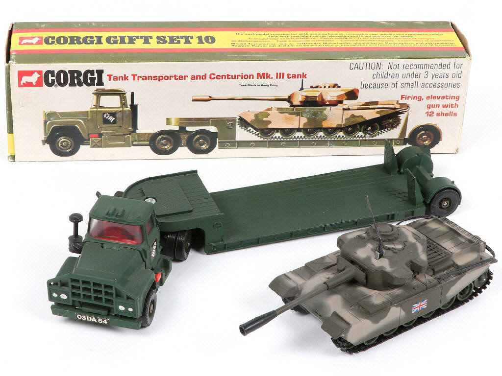 CORGI TOYS (GB) GS10 MACK Semi-remorque surbaissée avec char CENTURION kaki & camouflé
