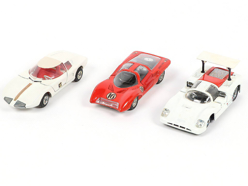 comprend les modèles : MONZA GT de la marque 'TEKNO', CHAPARRAL de la marque 'MEBETOYS' & FERRARI P.5 de la marque 'POLITOYS'