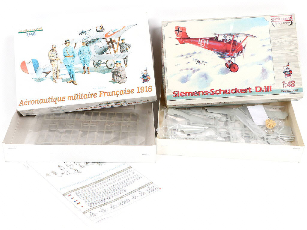 différentes échelles : 1/72ème & 1/48ème - 3 boïtes scellées - 4 boîtes ouvertes (éléments en grappes sous sachets avec notices & planches d'autocollants) - boîtes en état 'a' à 'b'
