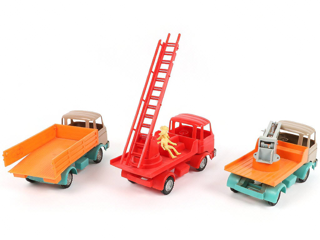 matière plastique - dimensions : 22 X 10 cm - camions à frictions (fonctionnent) - manque une ridelle arrière sur un modèles (arrière cintré)