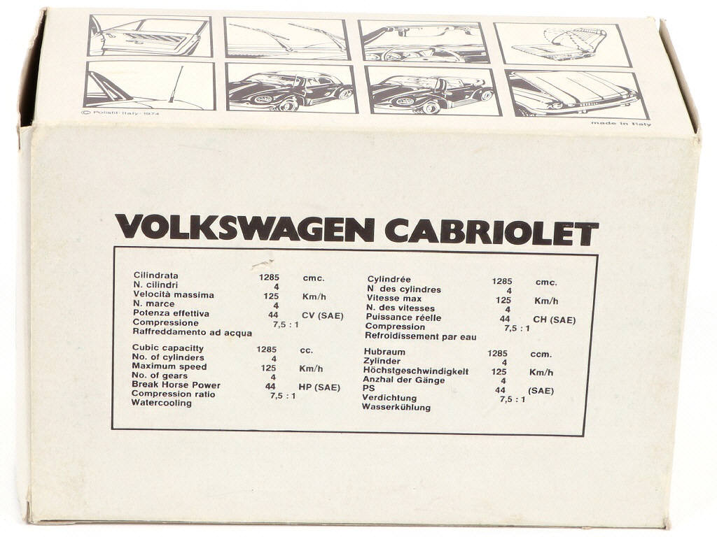 échelle 1/25ème - avec capote dépliée & repliée amovible (un petit ergot de cassé) - version avec antenne, intérieur beige foncé & pneus avec bande de roulement crantée
