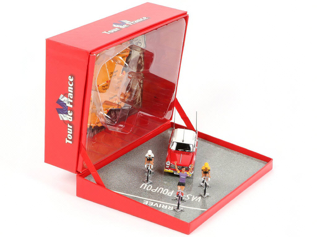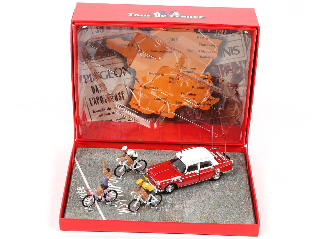 contient un PEUGEOT 404 & 3 cyclistes - avec sur emballage en carton