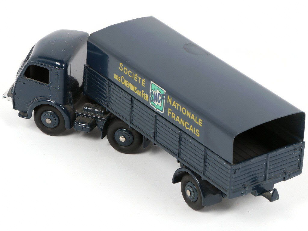 DINKY TOYS (FRANCE) 32AB PANHARD Semi-remorque 'S.N.C.F' (version avec intérieur de toit quadrillé) bleu foncé (fond de l'écusson uni)