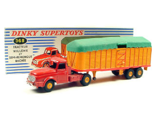 DINKY TOYS (FRANCE) 36B WILLEME Semi-remorque bâché (version avec jantes convexes) rouge & orange, bâche verte