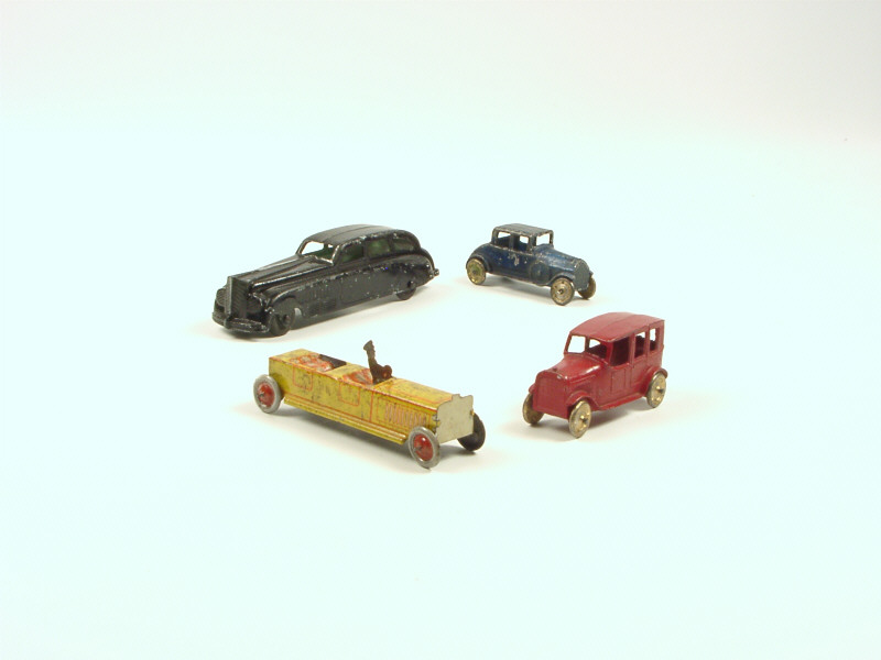 états de 'B' à 'R' - on y retrouve notamment la marque TOOTSIETOY dont 2 modèles semblent être des copies - un modèle en tôle lithographiée de marque MP entièrement verni avec traces d'oxydation - conditions 'B' to 'R' - includes mainly the make TOOTSIETOY of which 2 models seem to be copies - one model by MP, in lithographed tinplate, completely varnished with traces of rust