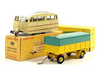 DINKY TOYS (FRANCE) 811 Caravane (version avec toit lisse) crème, filets rouges, toit blanc