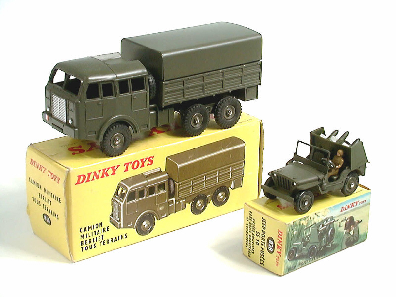 DINKY TOYS (FRANCE) 828 JEEP WILLYS Porte-fusées SS 10 kaki