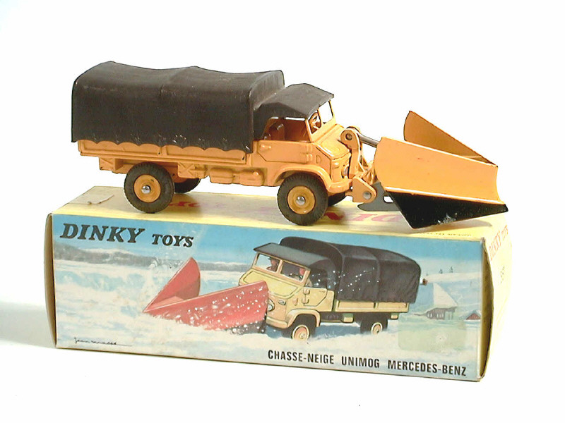 DINKY TOYS (FRANCE) 567 MERCEDES UNIMOG Chasse-neige jaune & noir, bâche marron foncé