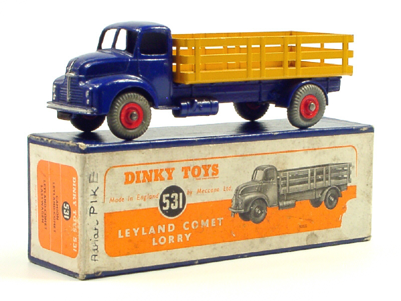 DINKY TOYS (GB) 531 LEYLAND COMET Plateau à ridelles ajourées bleu marine & jaune