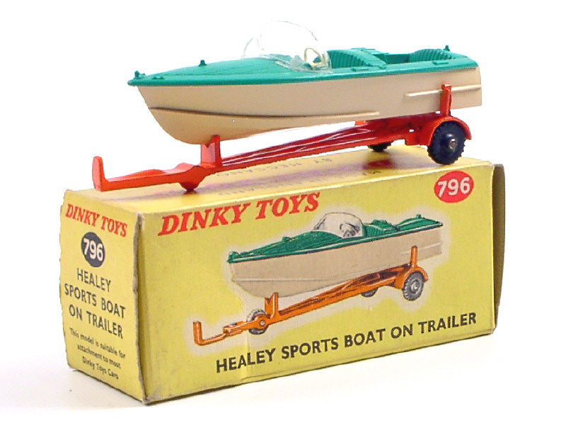 DINKY TOYS (GB) 796 HEALEY SPORTS BOAT avec remorque orange, crème & vert