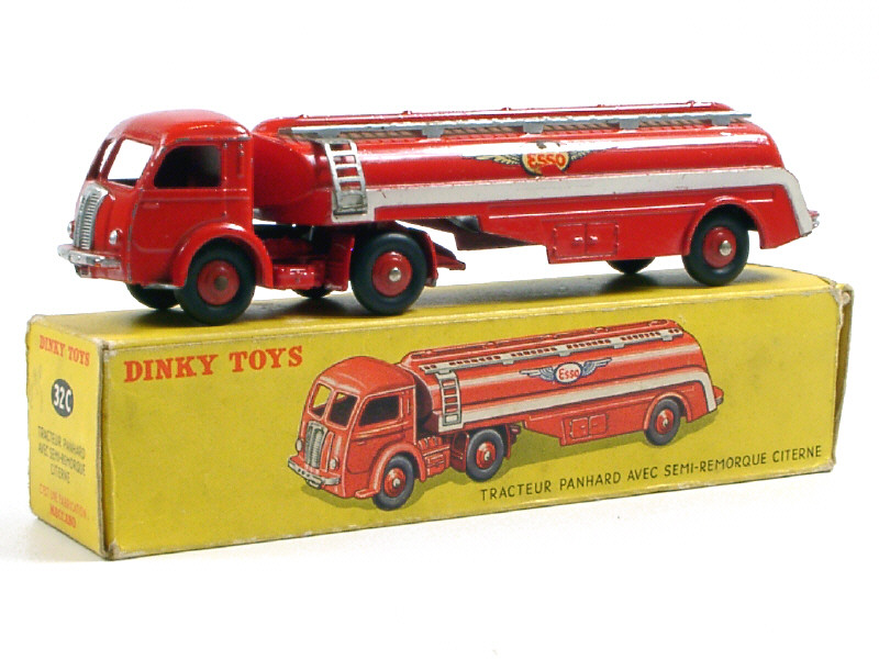 DINKY TOYS (FRANCE) 32C PANHARD Semi-remorque citerne 'ESSO' (version avec jantes convexes) rouge (décalques 'grandes ailes')