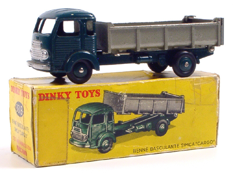 DINKY TOYS (FRANCE) 33B SIMCA CARGO Benne basculante vert foncé, benne gris métal doré (intérieur lisse)