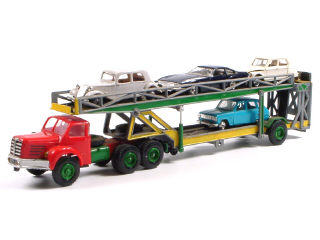 NOREV (FRANCE) 95 BERLIET TBO Porte-voitures avec 4 véhicules rouge, vert, jaune & gris