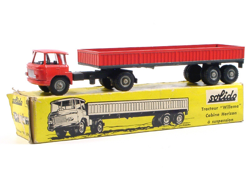 SOLIDO (FRANCE) 302 WILLEME Semi-remorque plateau à ridelles TITAN framboise & gris