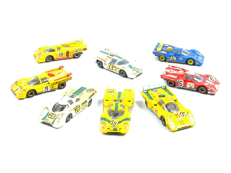 miniatures reproduisant les modèles : PORSCHE 917, LOLA T70 MK 3B & FERRARI 512 M - fixations d'un aileron cassées