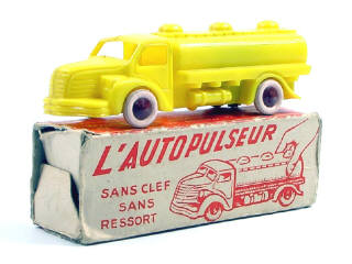 moteur à friction (fonctionne) - petites traces d'oxydation sur les axes de roues - manque la séparation de pare-brise - avec rare boîte portant la mention 'L'AUTOPROPULSEUR' ainsi que le mode d'emploi imprimé sur 2 faces