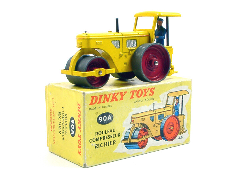 DINKY TOYS (FRANCE) 90A RICHIER Rouleau compresseur jaune & rouge