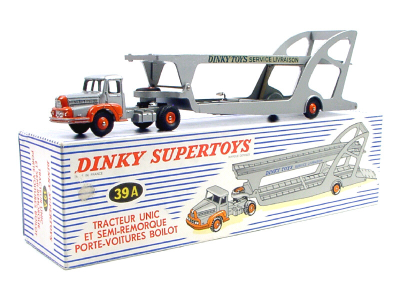 DINKY TOYS (FRANCE) 39A UNIC Porte-voitures 'BOILOT' gris métal & orange