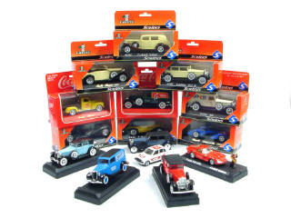 miniatures reproduisant les modèles : CITROËN, FERRARI, DUESENBERG, PACKARD, CADILLAC, ROLLS ROYCE, CORD, BUGATTI, DELAHAYE, FORD, DODGE & HISPANO-SUIZA - un modèle sans boîte en état 'C' avec petits manques - une boîte en état 'c'