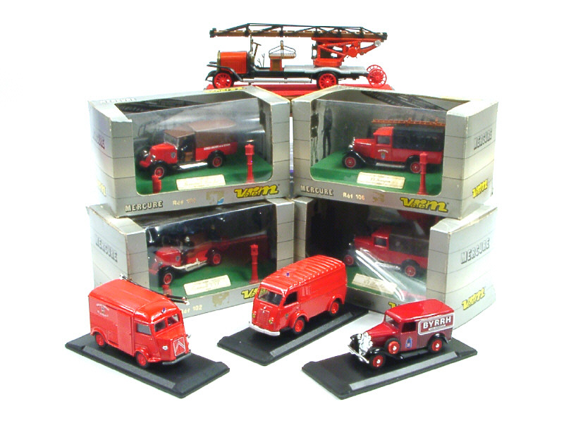 DIVERS Ensemble de 7 véhicules de pompiers & une fourgonnette 'BYRRH'