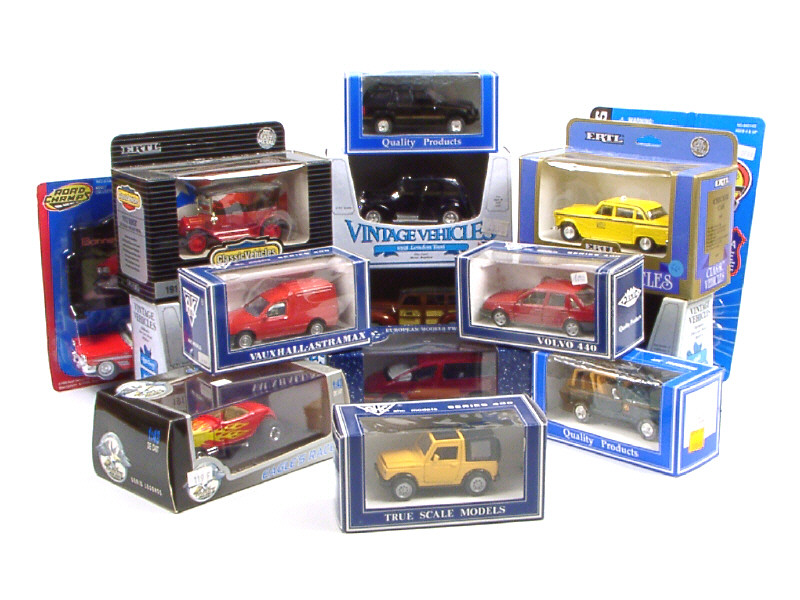 miniatures reproduisant les modèles : CHECKER, SUZUKI, JEEP, BUICK, AUSTIN, FORD, PONTIAC, VOLVO, VAUXHALL, CHEVROLET, CROWN VICTORIA - on y retrouve les marques : ERTL, UNIVERSAL HOBBIES & ROAD CHAMPS - 2 modèles sous blister jamais ouverts