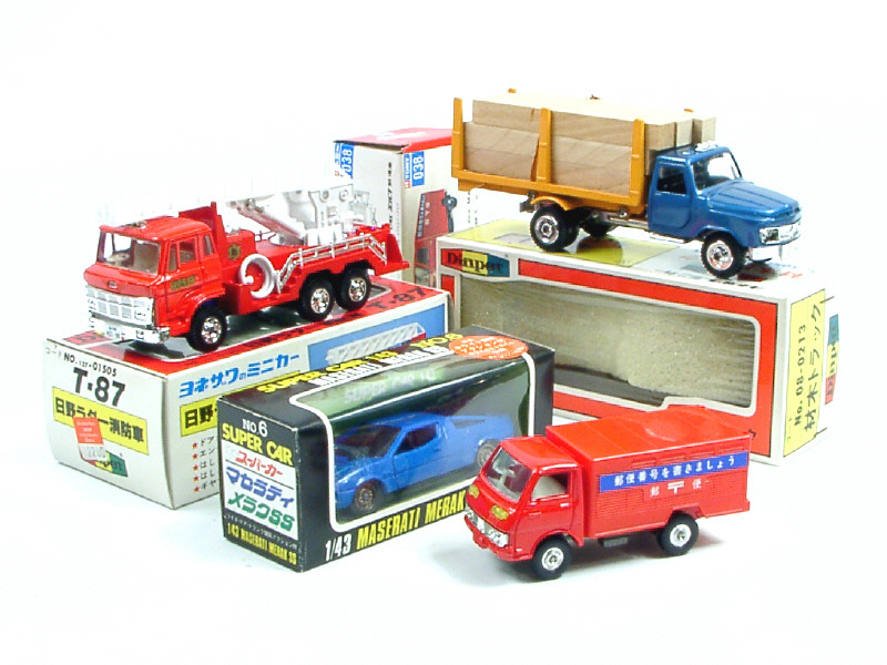 YONEZAWA TOYS DIAPET (JAPON) 0213 Camion-plateau à ranchers transport de bois bleu métal & jaune