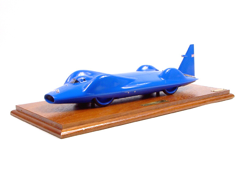 échelle 1/24ème - présentée sur socle en bois avec vitrine - pilotée par Donald CAMPBELL ayant atteint la vitesse record de 403,10 MPH sur le lac Eyre en Australie - série limitée numérotée 06/78 exemplaires & signée par le fabricant - REALISATION ARTISANALE DE TRES HAUTE QUALITE !