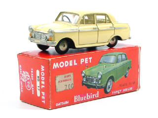 ASAHI-ATC MODEL PET (JAPON) 17 DATSUN BLUEBIRD 1962 beige clair, intérieur ivoire