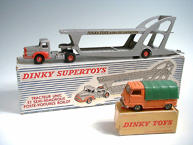 DINKY TOYS (FRANCE) 894 UNIC Porte-voitures 'BOILOT' (version avec jantes concaves) gris métal & orange