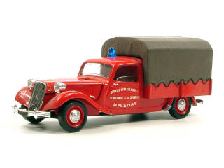 METZ MINIATURES (FRANCE) CITROËN Traction 15 six Plateau à ridelles bâché 'SERVICE DEPARTEMENTAL D'INCENDIE & DE SECOURS DU PAS DE CALAIS' 1939 rouge, bâche marron