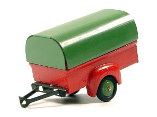 DINKY TOYS (FRANCE) 25T Remorque bâchée à 2 roues (version avec roues à pneus) rouge, bâche & jantes vertes