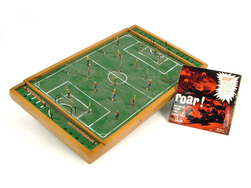 dimensions : 57 x 33 cm - un ensemble de manettes permet de faire 'shooter' les joueurs sur le terrain - manque quelques câbles - partie inférieure du plateau de jeu oxydé