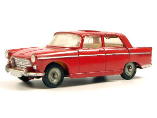 DINKY TOYS (FRANCE) 536 PEUGEOT 404 avec remorque monoroue (skis manquants) rouge