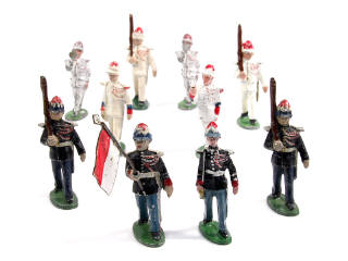 états de 'B' à 'E' - comprend : 4 soldats avec le fusil à l'épaule, 2 officiers avec le sabre à l'épaule, 2 clairons & 2 porte-étendards (manque un étendard)