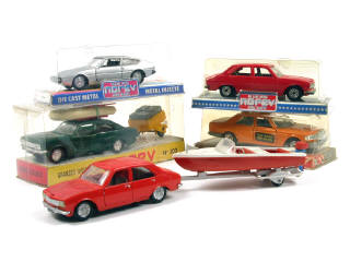 NOREV (FRANCE) PEUGEOT 504 avec bateau ROCCA sur remorque orange & blanc