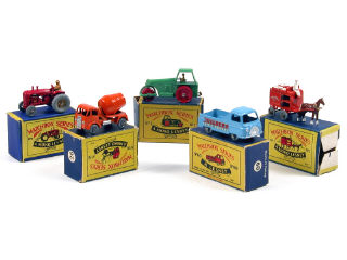 MATCHBOX (GB) Ensemble de 2 véhicules de travaux publics, une camionnette, un tracteur agricole & une voiture hippomobile