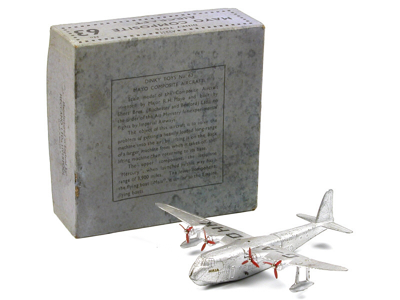 immatriculation G-ADHK - version de 1939-1941 - importantes traces de métal fatigue - manque le 2ème appareil (MERCURY) fixé à l'origine sur le dos de l'hydravion - boîte tachée - G-ADHK registration number - 1939-41 version - major traces of metal fatigue - missing the second plane (MERCURY) which was originally attached to the top of the seaplane - stained box