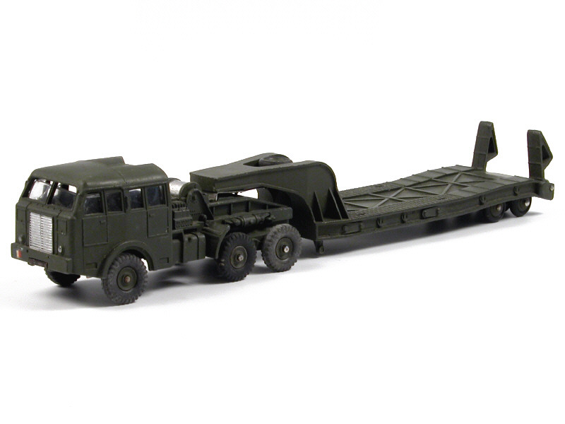 DINKY TOYS (FRANCE) 890 BERLIET Transport de char (version avec jantes du tracteur concaves & de la remorque convexes) kaki