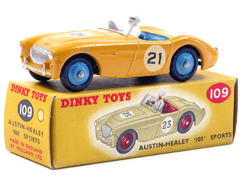 DINKY TOYS (GB) 109 AUSTIN HEALEY 100 Sport jaune d'or, intérieur & jantes bleus