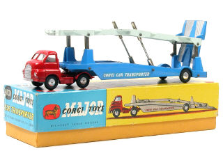 CORGI TOYS (GB) 1101 BIG BEDFORD Porte-voitures 'CORGI CAR TRANSPORTER' bleu, rouge & vert pâle