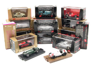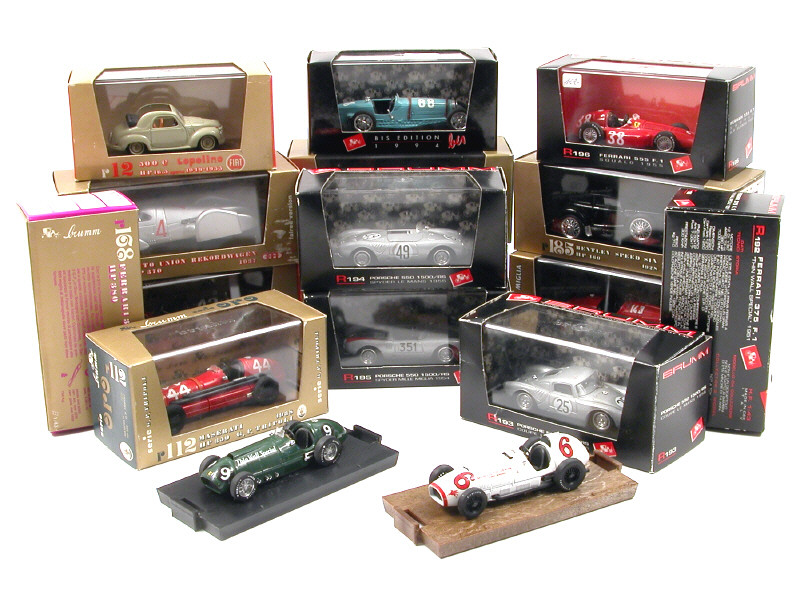 miniatures reproduisant les modèles : FERRARI, ALFA ROMEO, MASERATI, FORD, FIAT, AUTO UNION, BUGATTI, PORSCHE & BENTLEY