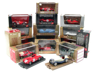miniatures reproduisant les modèles : FERRARI, BENTLEY, FIAT, ALFA ROMEO, LANCIA, BENZ, JAGUAR, MORGAN & BUGATTI