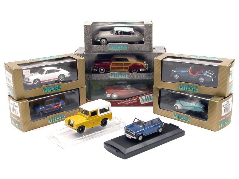 miniatures reproduisant les modèles : LAND ROVER, AUSTIN, PORSCHE, CITROËN, MESSERSCHMITT, TRIUMPH, BUICK & CHRYSLER - manque un rétroviseur sur un véhicule